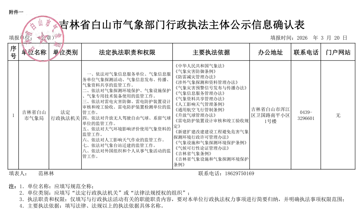 白山市气象局行政执法主体