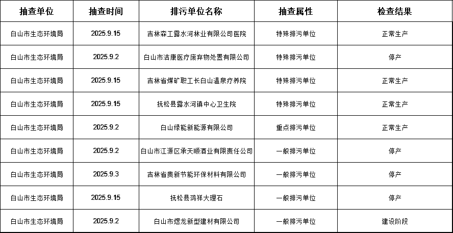| 白山市生态环境局2025年第3季度污染源日常环境监管随机抽查 |