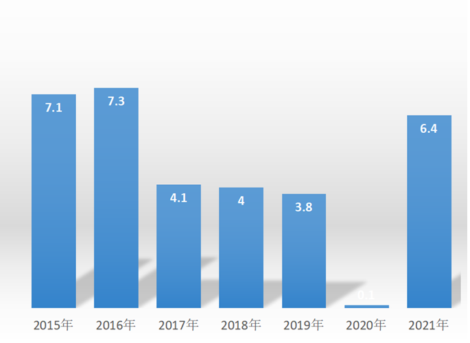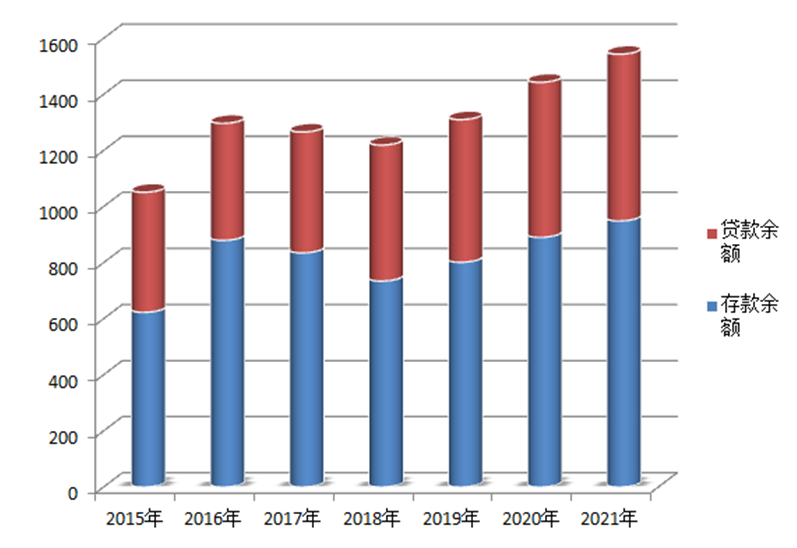 图6 2015-2021年金融机构本外币存款贷款余额(亿元)