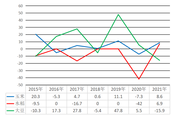 图3 2015-2021年主要粮食作物产量增速对比情况(%)