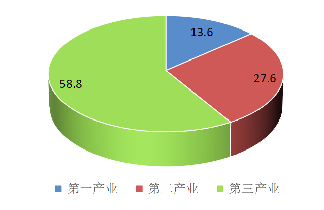 初步核算,全年实现地区生产总值[2]541.76亿元,比上年下降1.3%。其中,第一产业增加值73.92亿元,增长4.0%;第二产业增加值149.59亿元,下降1.1%;第三产业增加值318.25亿元,下降2.5%。三次产业结构比重为13.6:27.6:58.8。全年人均地区生产总值59228元,比上年增长0.8%。