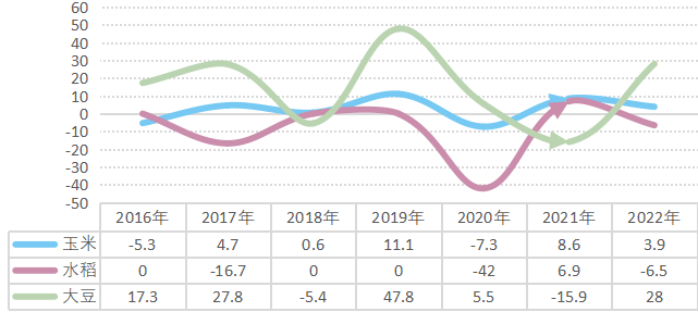 图3 2016-2022年主要粮食作物产量增速对比情况(%)