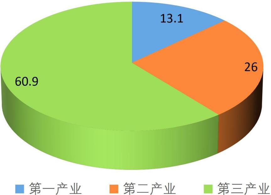 初步核算,全年实现地区生产总值[2]553.08亿元,比上年增长5.3%。其中,第一产业增加值72.20亿元,增长3.1%;第二产业增加值143.96亿元,增长0.8%;第三产业增加值336.92亿元,增长7.7%。三次产业结构比重为13.1:26.0:60.9。全年人均地区生产总值61378元,比上年增长6.8%。