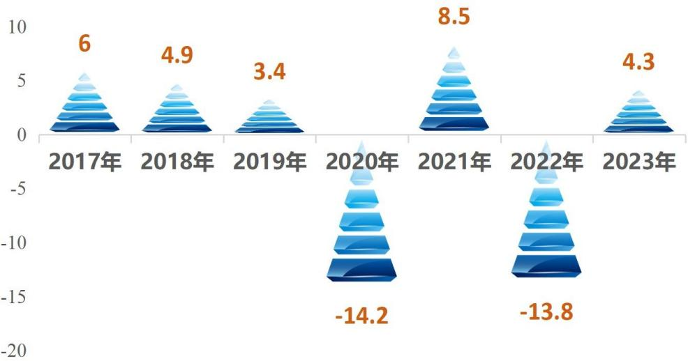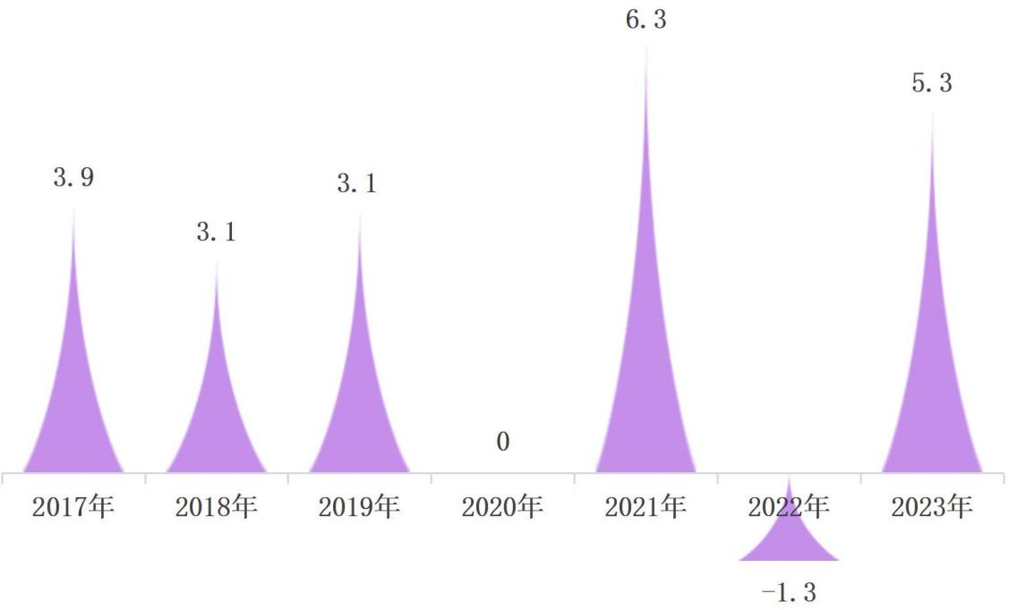 图3 2017—2023年规模以上工业增加值增速(%)