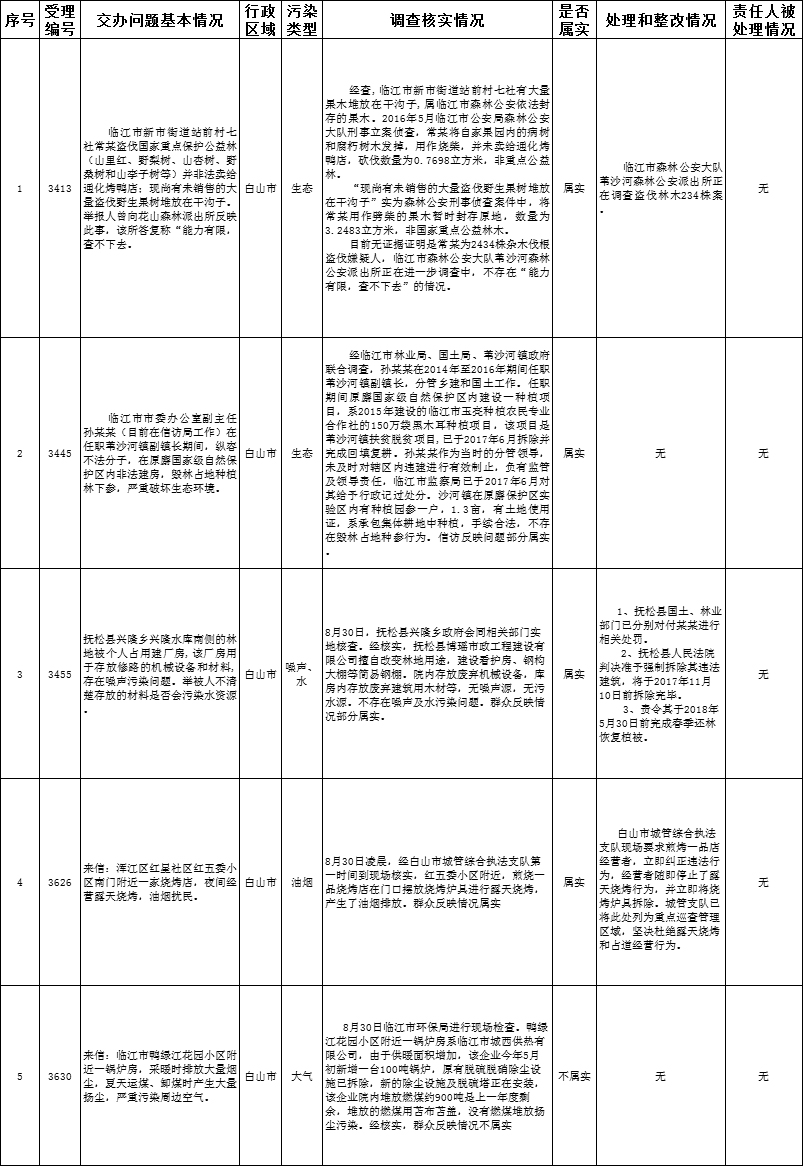 白山市群众信访举报转办和边督边改公开情况一览表(第18批 2017年9月7日)