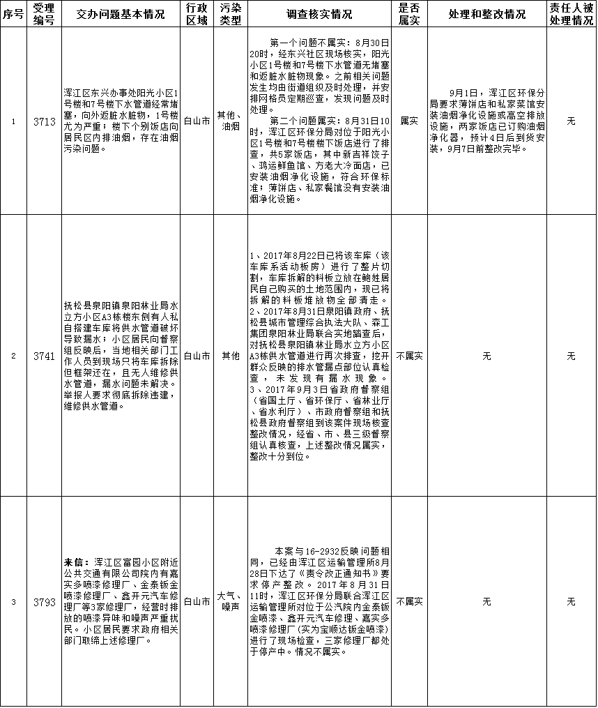 白山市群众信访举报转办和边督边改公开情况一览表(第18批 2017年9月7日)