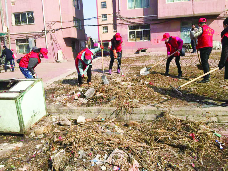 (图为:红旗街道开展环境卫生清理活动。)