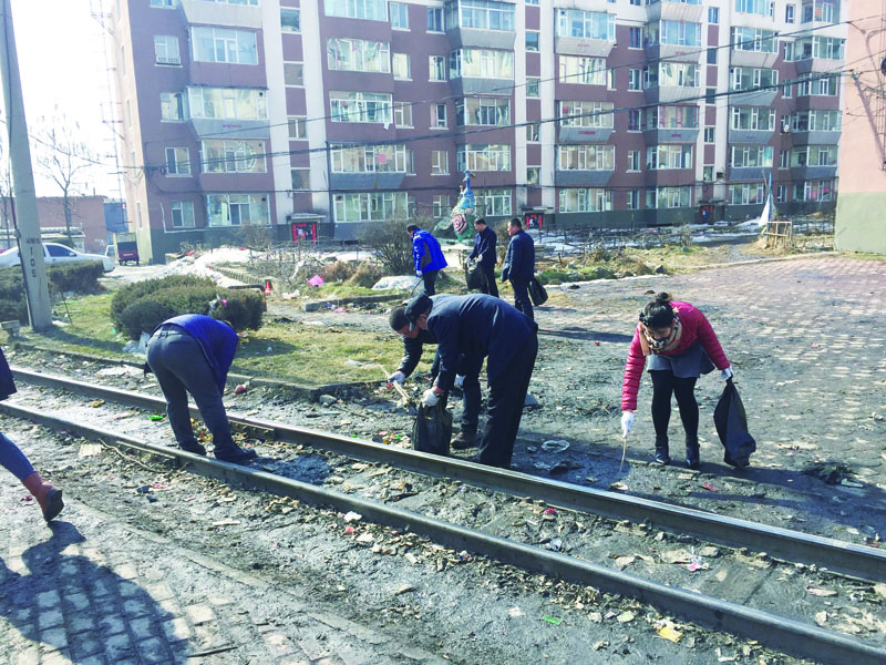 板石街道志愿者捡拾居民区周边垃圾