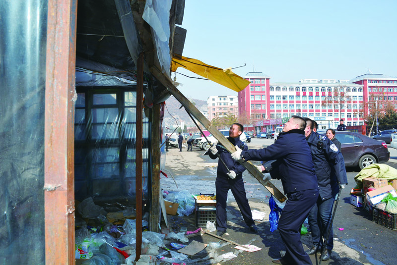 市城市管理综合执法支队执法人员拆除非法搭建的棚厦