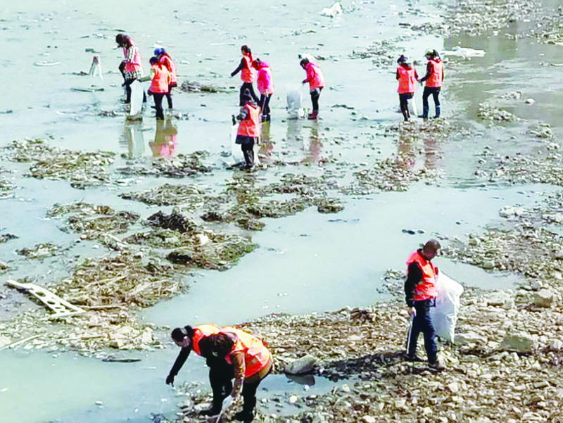 志愿者服务队清除东兴街道东岗社区辖区内的残冰