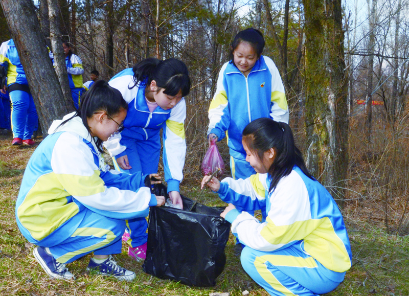 市第八中学学生志愿者服务队清理北山公园内的卫生