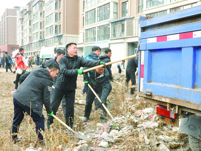 市直机关干部到春江花园三期小区内清理垃圾