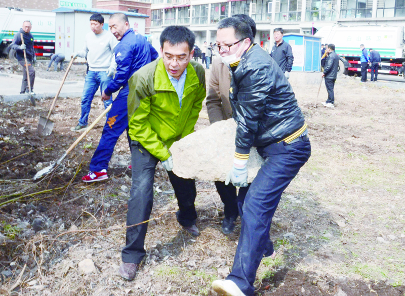 市直机关干部到春江花园三期小区内清理垃圾