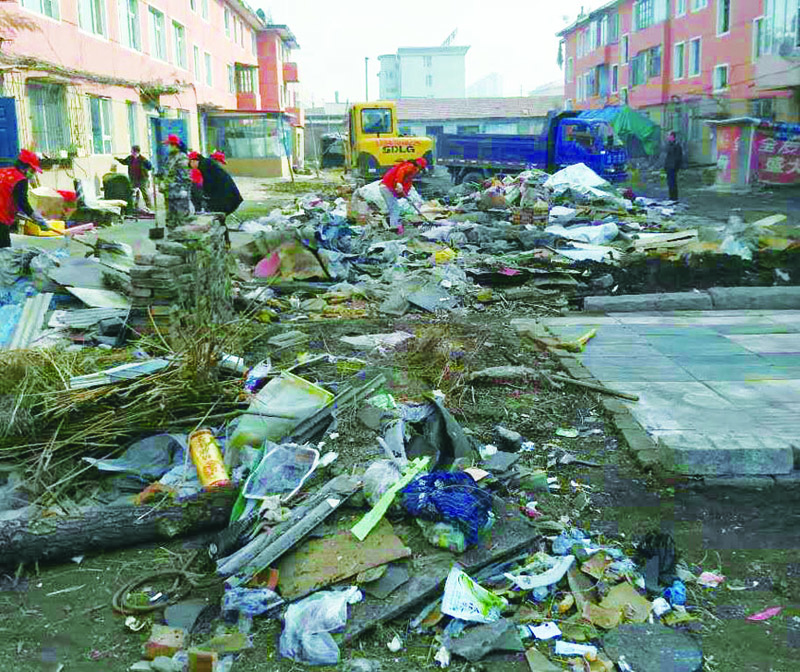志愿者们清理小区垃圾