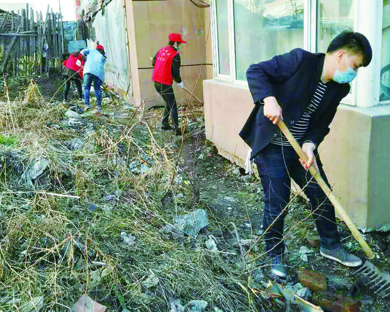 团市委志愿者服务队在北山公园拾起树林内的垃圾