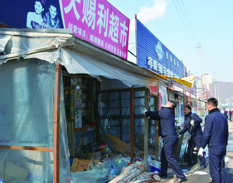 执法人员依法拆除违章建筑