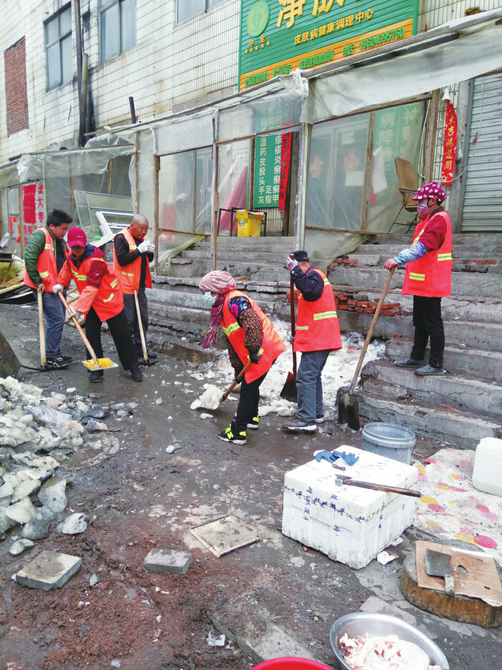 社区党员志愿者清理居民区越冬垃圾