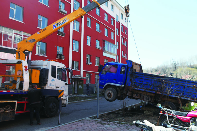 清理侵占绿地的“僵尸车”