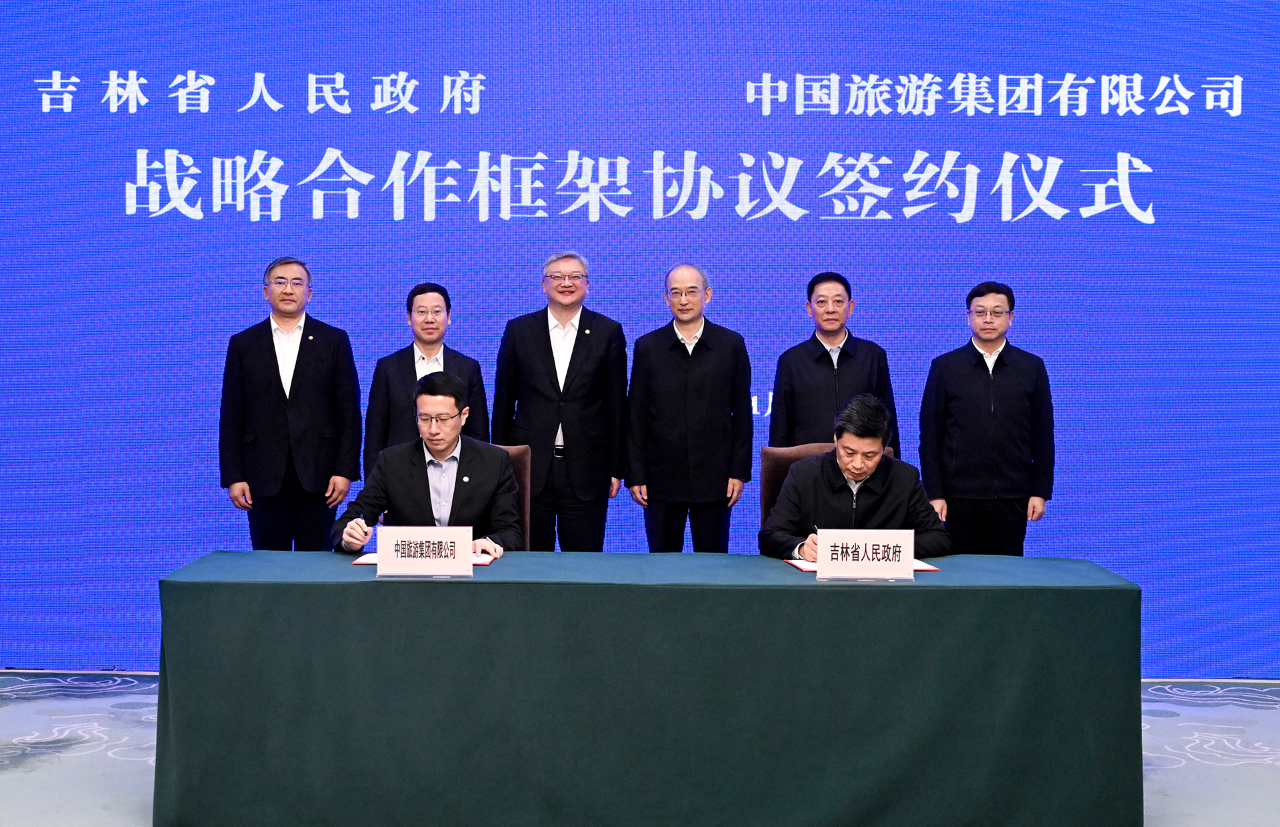 11月21日,省委书记黄强,省委副书记、省长胡玉亭在长春会见中国旅游集团有限公司党委书记、董事长王海民和总经理范云军一行,并共同见证省政府与中国旅游集团签署战略合作框架协议。